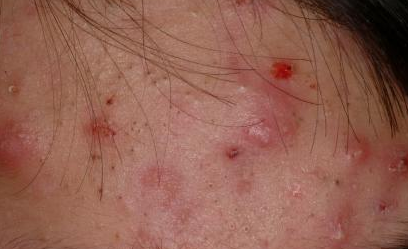 脓疮性青春痘:皮肤上,以脓疮表现为主,绿豆大小,顶部形成白头脓疱,底部颜色为浅红或深红,触碰时感觉疼痛,脓液较为黏稠,治疗不当,常遗留或浅或深的瘢痕。